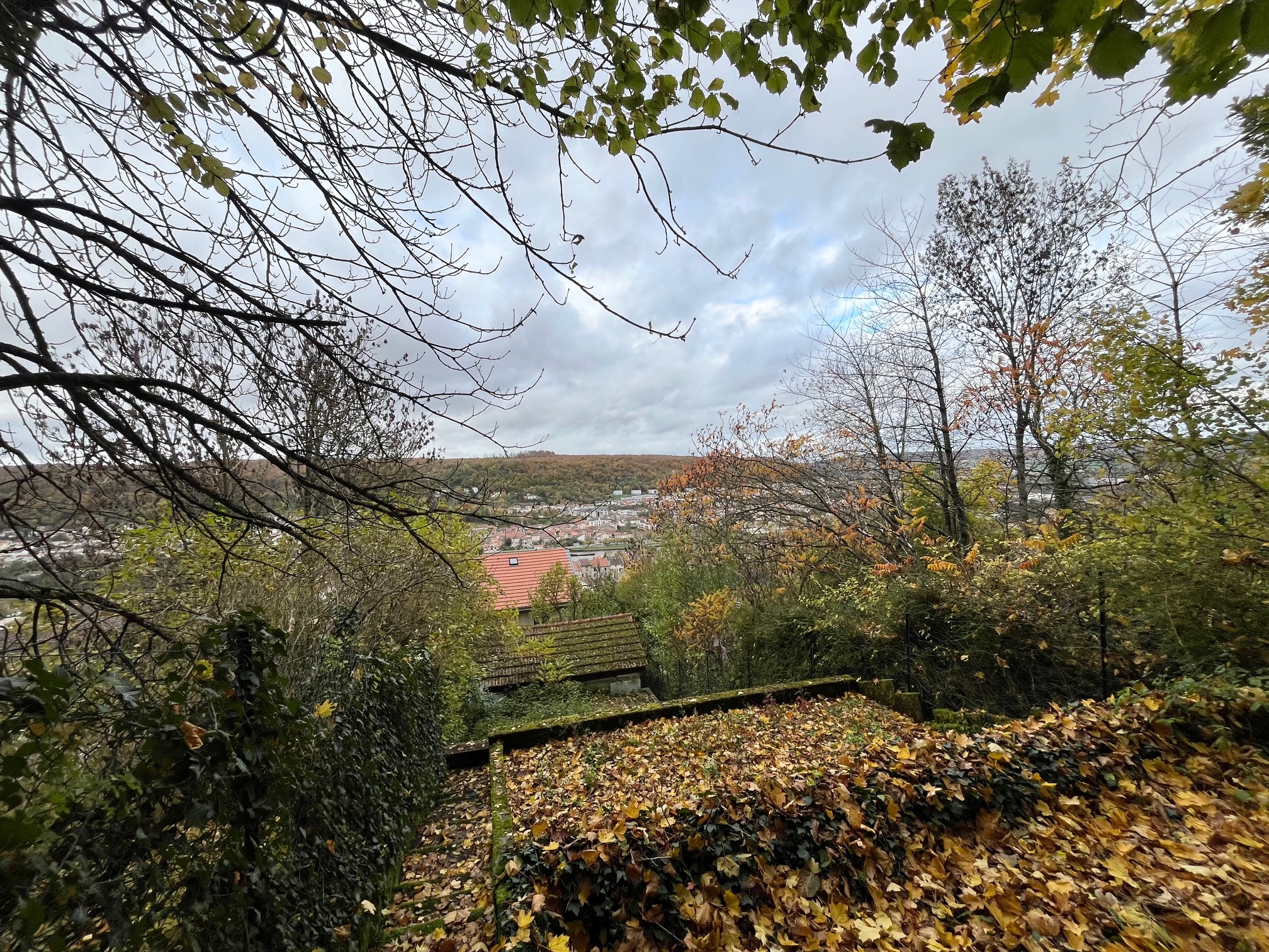 Le jardin en longueur est aménagé en plusieurs niveaux accessibles par des escaliers.