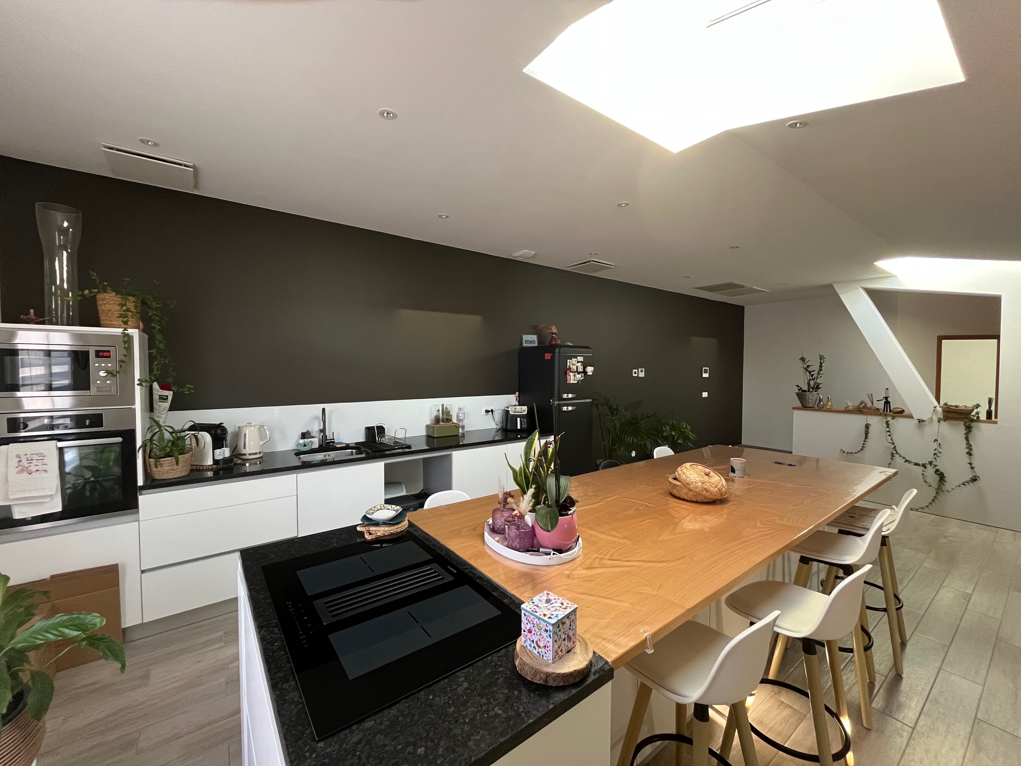 Elle développe environ 139 m² habitables et se compose d’une grande pièce de vie lumineuse idéale pour recevoir, avec un bel espace salon séjour et cuisine ouverte.