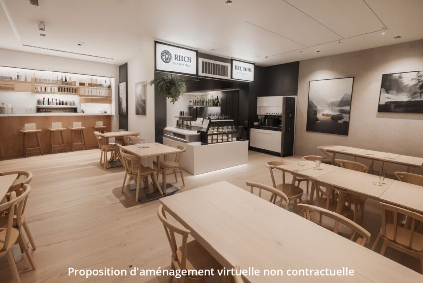 Ce bien est constitué d’un espace bar (comptoir avec tireuse et frigo) et d’un espace restauration (cuisine professionnelle entièrement équipée).